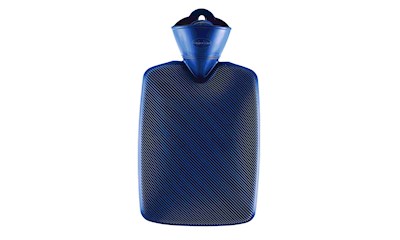 Wärmflasche in Halblamellenstruktur in den beliebten Farben Blau, Rot, Weiss und Schwarz. Ohne Bezug.