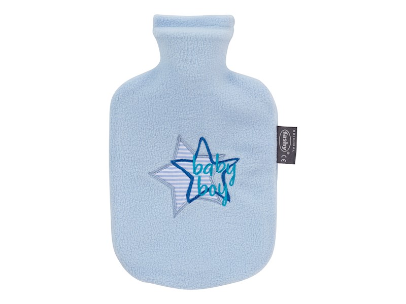 sofort, ab Lager Wärmflasche "baby boy" - 0.8 Liter, Blau, Heisswasser, Standard Bettflasche, Wasser, Fleeceüberzug
